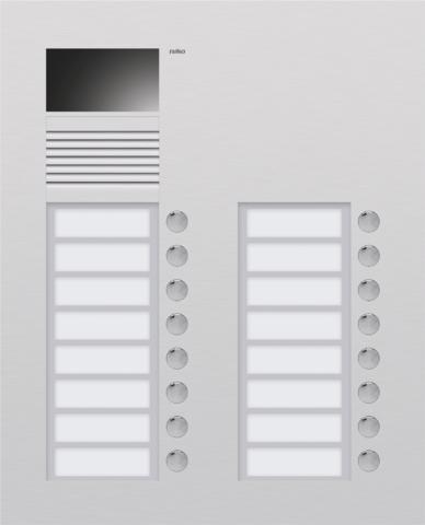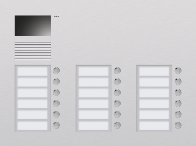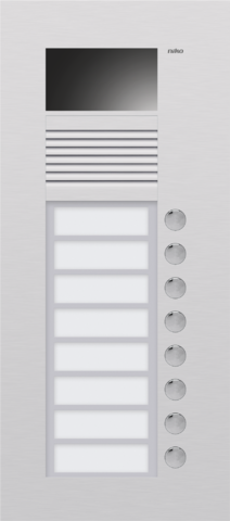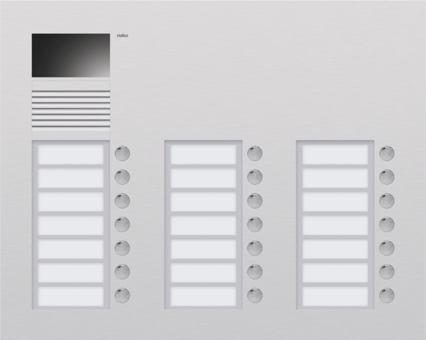 This ultra-flat flush-mounting unit is finished with 3 mm-thick aluminium. It is equipped with a colour camera. The external unit is equipped with a 5 mm-thick name plate in Plexiglas which is vandal proof. The metal-plated push-button contacts are maintenance-free and durable. The external unit includes the flush-mounting box. This external unit has 3 bells.