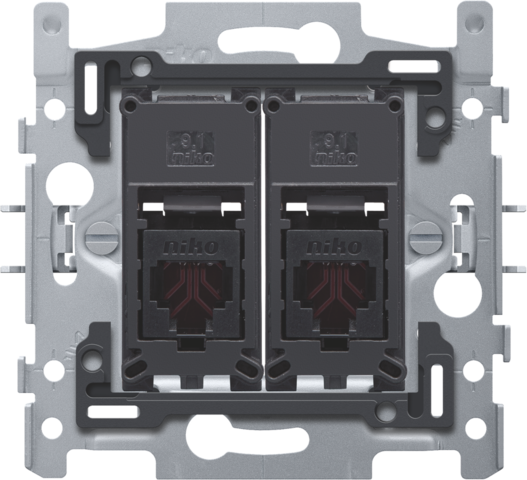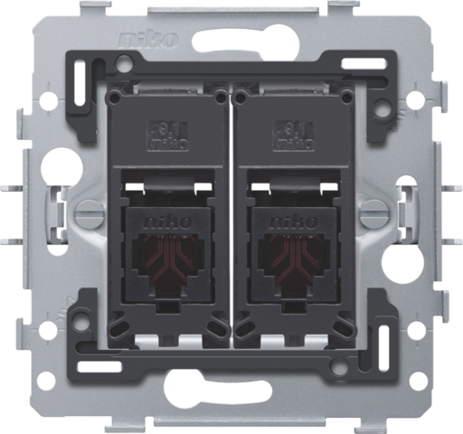 Central plate for 2 RJ outlets, flat model. The central plate has a transparent text field to which you can easily add text or icons. Finishing colour: champagne coated.