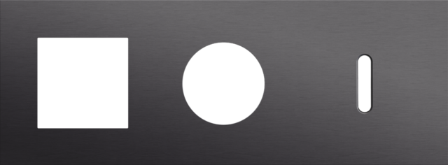 The Niko Rocker threefold horizontally oriented faceplate clicks onto one 45 x 45 mm function, a socket outlet and a single switch function that have been horizontally installed next to each other with a centre distance of 71 mm. It consists of an upper frame, light guide and lower frame that are mechanically interconnected. The upper frame is made of steel. The lower frame is made of white polycarbonate (PC) + acrylic-styrene-acrylate (ASA), white coated. The upper frame is 2 mm thick and the lower frame 6 mm.