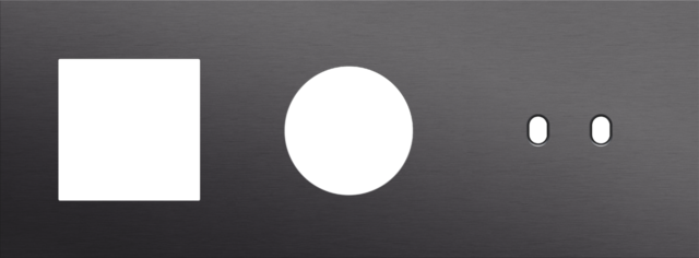 The Niko Toggle threefold horizontally oriented faceplate clicks onto one 45 x 45 mm function, a socket outlet and a double switch function that have been horizontally installed next to each other with a centre distance of 71 mm. It consists of an upper frame, light guide and lower frame that are mechanically interconnected. The upper frame is made of steel. The lower frame is made of white polycarbonate (PC) + acrylic-styrene-acrylate (ASA), white coated. The upper frame is 2 mm thick and the lower frame 6 mm.