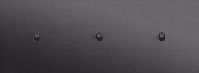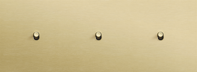 The Niko Toggle threefold horizontally oriented faceplate clicks onto three single switch functions that have been horizontally installed next to each other with a centre distance of 71 mm. The faceplate combines with any available Niko Toggle for single switch functions. It consists of an upper frame, light guide and lower frame that are mechanically interconnected. The upper frame is made of steel. The lower frame is made of white polycarbonate (PC) + acrylic-styrene-acrylate (ASA), white coated. The upper frame is 2 mm thick and the lower frame 6 mm.