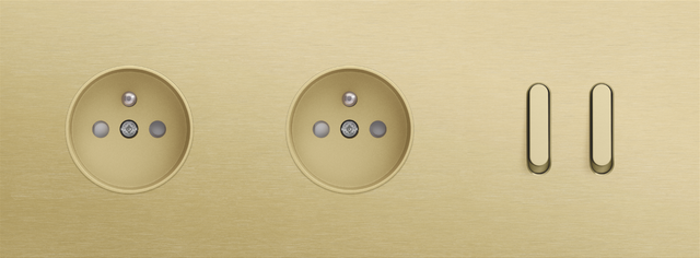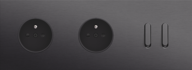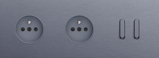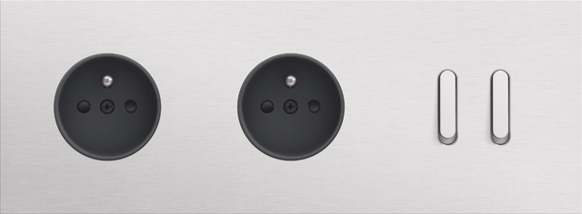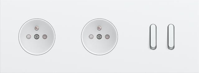 The Niko Rocker threefold horizontally oriented faceplateclicks onto two socket outlets and a double switch function that have been vertically installed on top of each other with a centre distance of 71 mm. The faceplate combines with any available Niko Rocker and Niko Toggle socket outlet finishing set and a Niko Rocker double switch function. The faceplate combines with any available Niko Rocker and Niko Toggle socket outlet finishing set and a Niko Rocker double switch function. It consists of an upper frame, light guide and lower frame that are mechanically interconnected. The upper frame is made of steel. The lower frame is made of white polycarbonate (PC) + acrylic-styrene-acrylate (ASA), white coated. The upper frame is 2 mm thick and the lower frame 6 mm.