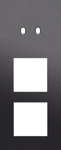 The Niko Toggle threefold vertically oriented faceplate clicks onto a double switch and two 45 x 45 mm functions that have been vertically installed on top of each other with a centre distance of 60 mm. The faceplate combines with any available Niko Toggle for double switch function and Niko 45 x 45 mm finishing set. It consists of an upper frame, light guide and lower frame that are mechanically interconnected. The upper frame is made of steel. The lower frame is made of white polycarbonate (PC) + acrylic-styrene-acrylate (ASA), white coated. The upper frame is 2 mm thick and the lower frame 6 mm.
