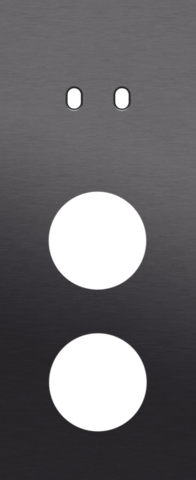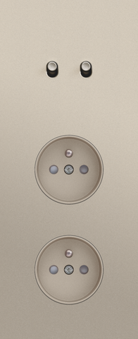 The Niko Toggle threefold vertically oriented faceplate clicks onto a double switch and two socket outlet functions that have been vertically installed on top of each other with a centre distance of 60 mm. The faceplate combines with any available Niko Toggle for double switch functions and Niko Rocker and Niko Toggle socket outlet finishing set. It consists of an upper frame, light guide and lower frame that are mechanically interconnected. The upper frame is made of steel. The lower frame is made of white polycarbonate (PC) + acrylic-styrene-acrylate (ASA), white coated. The upper frame is 2 mm thick and the lower frame 6 mm.