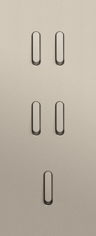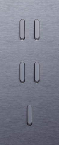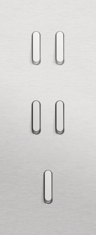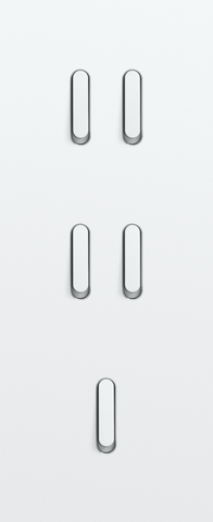 The Niko Rocker threefold vertically oriented faceplate clicks onto two double and a single switch function that have been vertically installed on top of each other with a centre distance of 60 mm. The faceplate combines with any available Niko Rocker for single and double switch functions. It consists of an upper frame, light guide and lower frame that are mechanically interconnected. The upper frame is made of steel. The lower frame is made of white polycarbonate (PC) + acrylic-styrene-acrylate (ASA), white coated. The upper frame is 2 mm thick and the lower frame 6 mm.