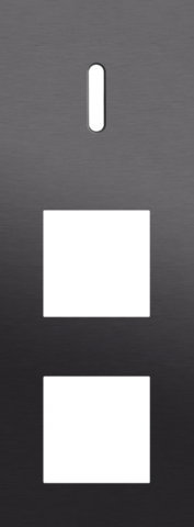The Niko Rocker threefold vertically oriented faceplate clicks onto a single switch and two 45 x 45 mm functions that have been vertically installed on top of each other with a centre distance of 71 mm. The faceplate combines with any available Niko Rocker for single switch functions and Niko 45 x 45 mm finishing set. It consists of an upper frame, light guide and lower frame that are mechanically interconnected. The upper frame is made of steel. The lower frame is made of white polycarbonate (PC) + acrylic-styrene-acrylate (ASA), white coated. The upper frame is 2 mm thick and the lower frame 6 mm.