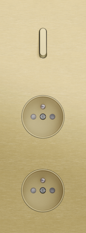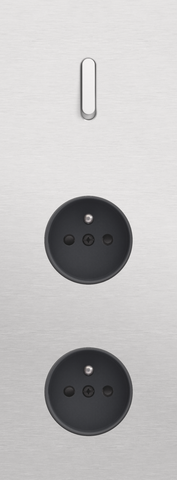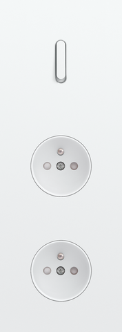 The Niko Rocker threefold vertically oriented faceplate clicks onto a single switch and two socket outlet functions that have been vertically installed on top of each other with a centre distance of 71 mm. The faceplate combines with any available Niko Rocker for single switch functions and Niko Rocker and Niko Toggle socket outlet finishing set. It consists of an upper frame, light guide and lower frame that are mechanically interconnected. The upper frame is made of steel. The lower frame is made of white polycarbonate (PC) + acrylic-styrene-acrylate (ASA), white coated. The upper frame is 2 mm thick and the lower frame 6 mm.