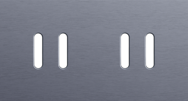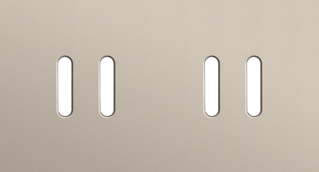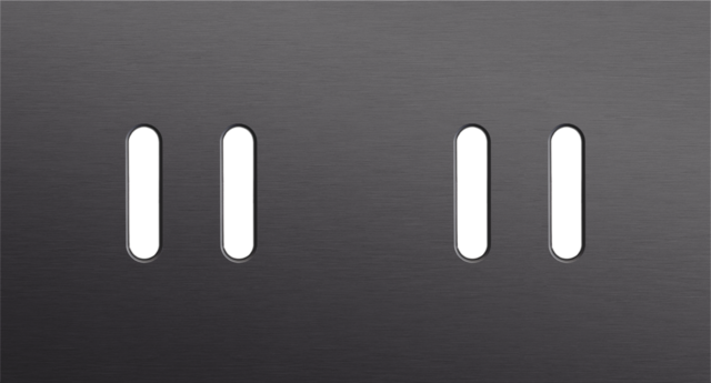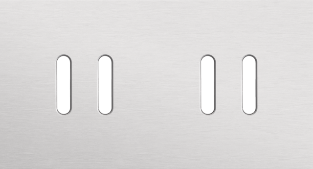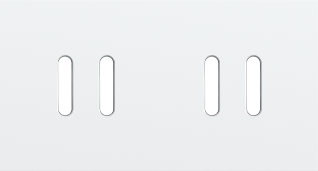 This Niko Rocker twofold horizontally oriented faceplate clicks onto two bases for a fourfold push button, with LEDs and comfort sensors, Niko Home Control (550-160x4) that have been horizontally installed next to each other with a centre distance of 71 mm. The faceplate combines with any available Niko Rocker set (2 parts) for Niko Home Control. Please note that it cannot be combined with the classic Niko Rocker and Niko Toggle design range (171-xxxxx).