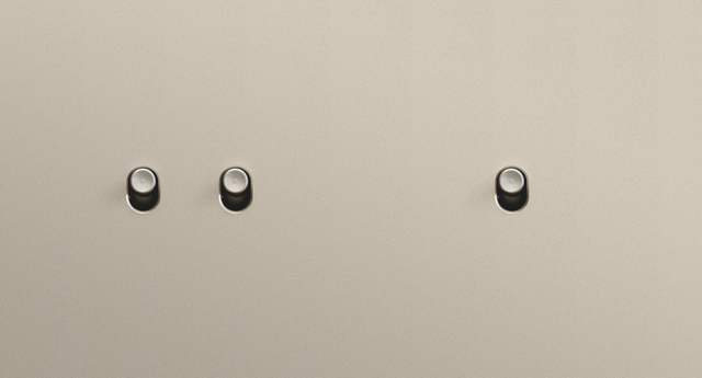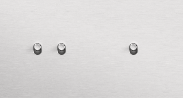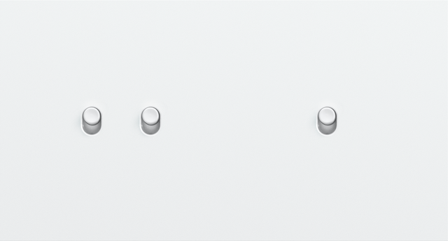 The Niko Toggle twofold horizontally oriented faceplateclicks onto a double and a single switch function that have been vertically installed on top of each other with a centre distance of 71 mm. The faceplate combines with any available Niko Toggle single and double switch function. It consists of an upper frame, light guide and lower frame that are mechanically interconnected. The upper frame is made of steel. The lower frame is made of white polycarbonate (PC) + acrylic-styrene-acrylate (ASA), white coated. The upper frame is 2 mm thick and the lower frame 6 mm.