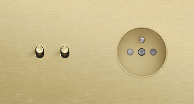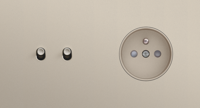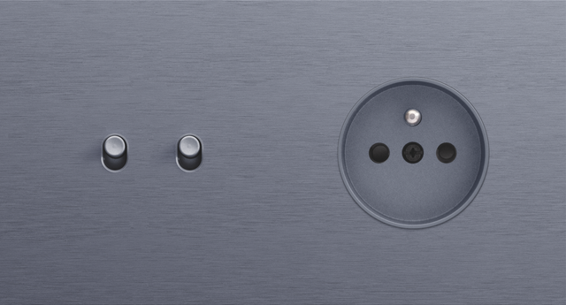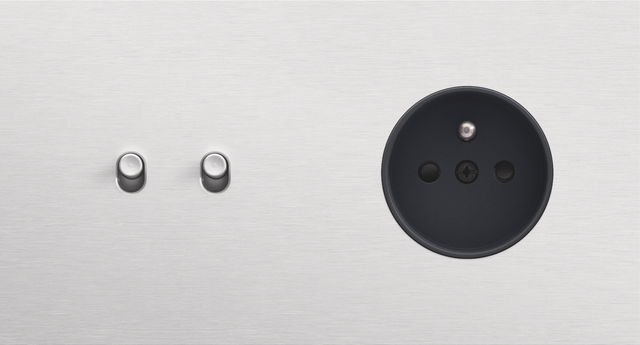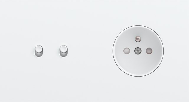 The Niko Toggle twofold horizontally oriented faceplateclicks onto a double switch and a socket outlet function that have been vertically installed on top of each other with a centre distance of 71 mm. The faceplate combines with any available Niko Toggle double switch function and a Niko Rocker and Niko Toggle socket outlet finishing set It consists of an upper frame, light guide and lower frame that are mechanically interconnected. The upper frame is made of steel. The lower frame is made of white polycarbonate (PC) + acrylic-styrene-acrylate (ASA), white coated. The upper frame is 2 mm thick and the lower frame 6 mm.