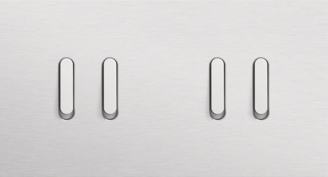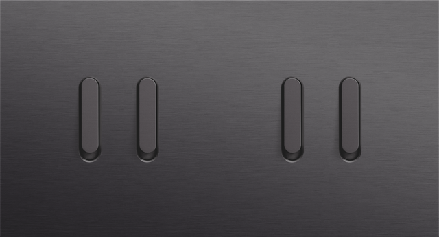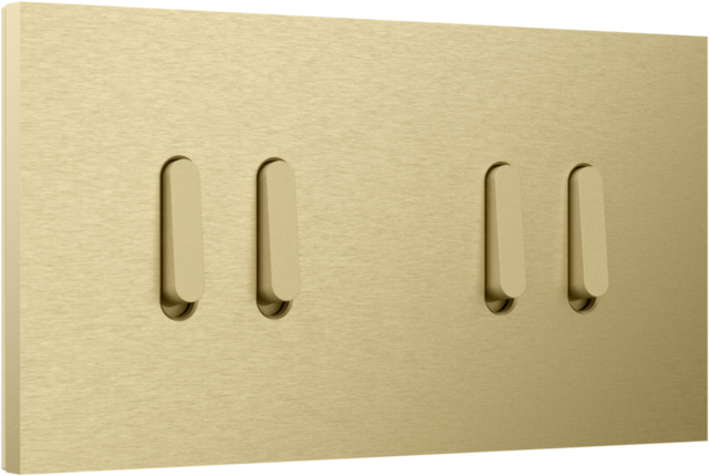 The Niko Rocker twofold horizontally oriented faceplate clicks onto two double switch functions that have been horizontally installed next to each other with a centre distance of 71 mm. The faceplate combines with any available Niko Rocker for double switch functions.