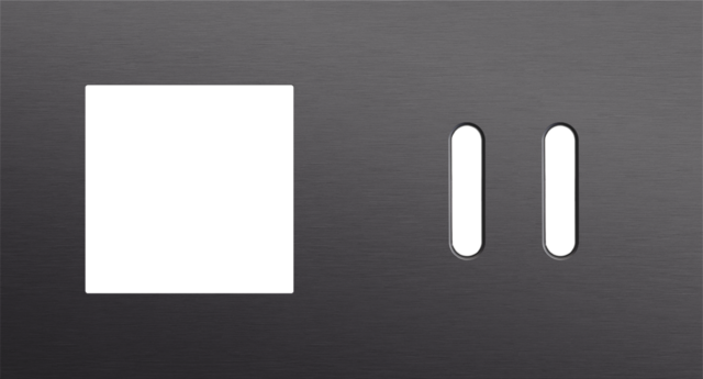 The Niko Rocker twofold horizontally oriented faceplate clicks onto one 45 x 45 mm function and a double switch function that have been horizontally installed next to each other with a centre distance of 71 mm. The faceplate combines with any available Niko 45 x 45 mm function and a Niko Rocker double switch function. It consists of an upper frame, light guide and lower frame that are mechanically interconnected. The upper frame is made of steel. The lower frame is made of white polycarbonate (PC) + acrylic-styrene-acrylate (ASA), white coated. The upper frame is 2 mm thick and the lower frame 6 mm.