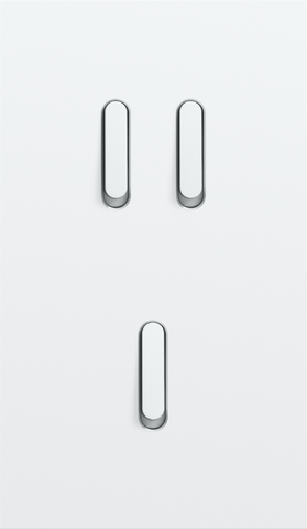 The Niko Rocker twofold vertically oriented faceplateclicks onto a double and a single switch function that have been vertically installed on top of each other with a centre distance of 60 mm. The faceplate combines with any available Niko Rocker single and double switch function. It consists of an upper frame, light guide and lower frame that are mechanically interconnected. The upper frame is made of steel. The lower frame is made of white polycarbonate (PC) + acrylic-styrene-acrylate (ASA), white coated. The upper frame is 2 mm thick and the lower frame 6 mm.