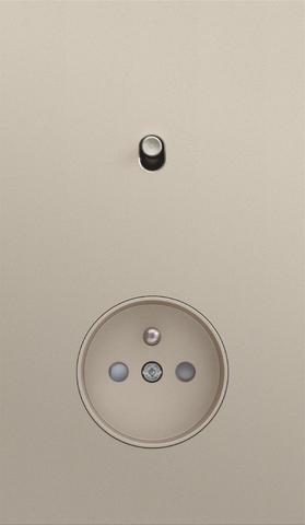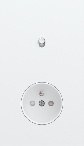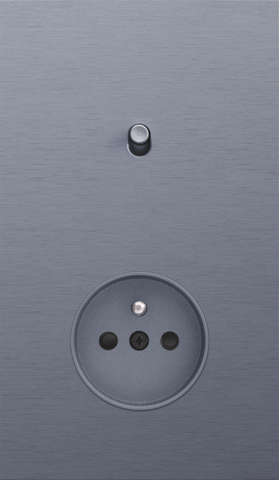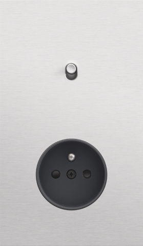 The Niko Toggle twofold vertically oriented faceplate clicks onto a single switch and a socket outlet function that have been vertically installed on top of each other with a centre distance of 60 mm. The faceplate combines with any available Niko Toggle single switch function and a Niko Rocker and Niko Toggle socket outlet finishing set It consists of an upper frame, light guide and lower frame that are mechanically interconnected. The upper frame is made of steel. The lower frame is made of white polycarbonate (PC) + acrylic-styrene-acrylate (ASA), white coated. The upper frame is 2 mm thick and the lower frame 6 mm.