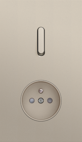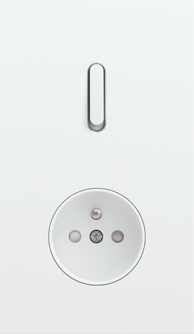 The Niko Rocker twofold vertically oriented faceplate clicks onto a single switch and a socket outlet function that have been vertically installed on top of each other with a centre distance of 60 mm. The faceplate combines with any available Niko Rocker for single switch functions and Niko Rocker and Niko Toggle socket outlet finishing set. It consists of an upper frame, light guide and lower frame that are mechanically interconnected. The upper frame is made of steel. The lower frame is made of white polycarbonate (PC) + acrylic-styrene-acrylate (ASA), white coated. The upper frame is 2 mm thick and the lower frame 6 mm.