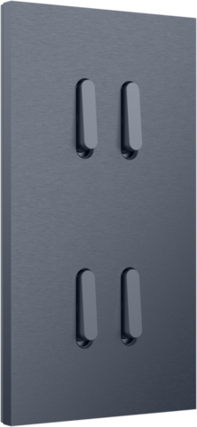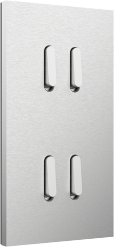 The Niko Rocker twofold vertically oriented faceplate clicks onto two double switch functions that have been vertically installed above each other with a centre distance of 60 mm. The faceplate combines with any available Niko Rocker for double switch functions.