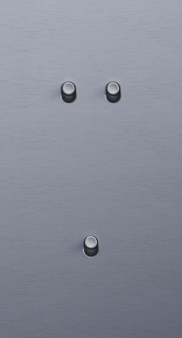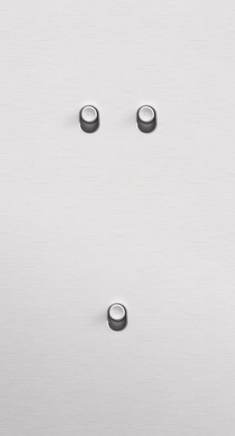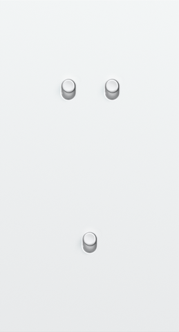 The Niko Toggle twofold vertically oriented faceplateclicks onto a double and a single switch function that have been horizontally installed next to each other with a centre distance of 71 mm. The faceplate combines with any available Niko Toggle single and double switch function. It consists of an upper frame, light guide and lower frame that are mechanically interconnected. The upper frame is made of steel. The lower frame is made of white polycarbonate (PC) + acrylic-styrene-acrylate (ASA), white coated. The upper frame is 2 mm thick and the lower frame 6 mm.