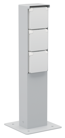 The garden post includes one socket outlet (16 A/250 Vac) with pin earthing, shutters and plug-in terminals. It has an IP55 protection degree and is equipped with a baseplate for installation on a solid surface. Its functional and beautiful design makes the garden post a perfect fit for outdoor areas, such as on terraces and in outdoor kitchens. Moreover, the entire unit is splashproof, which makes it extremely well-suited for use in damp areas and ammonia-rich environments.