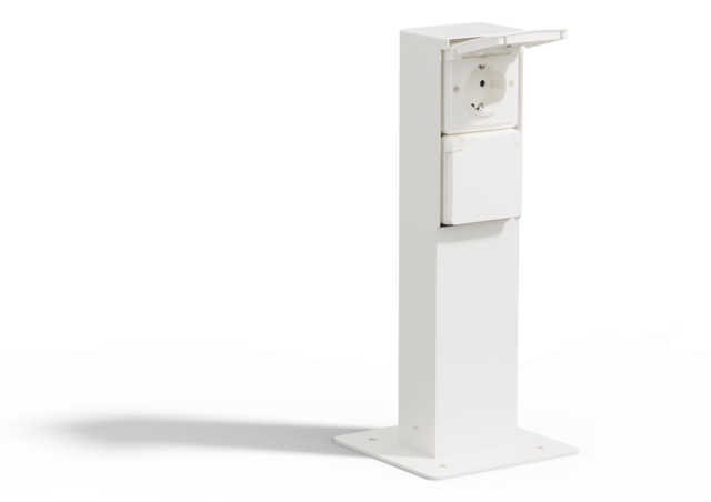 The garden post includes two socket outlets (16 A/250 Vac) with pin earthing, shutters and plug-in terminals. It has an IP55 protection degree and is equipped with a baseplate for installation on a solid surface. Its functional and beautiful design makes the garden post a perfect fit for outdoor areas, such as on terraces and in outdoor kitchens. Moreover, the entire unit is splashproof, which makes it extremely well-suited for use in damp areas and ammonia-rich environments.
