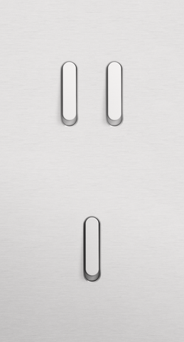 Twofold faceplate, vertical 71 mm centre distance, for a double and a single switch function, Niko Rocker steel white coated