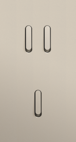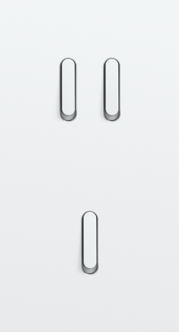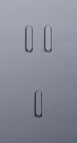 The Niko Rocker twofold vertically oriented faceplateclicks onto a double and a single switch function that have been horizontally installed next to each other with a centre distance of 71 mm. The faceplate combines with any available Niko Rocker single and double switch function. It consists of an upper frame, light guide and lower frame that are mechanically interconnected. The upper frame is made of steel. The lower frame is made of white polycarbonate (PC) + acrylic-styrene-acrylate (ASA), white coated. The upper frame is 2 mm thick and the lower frame 6 mm.