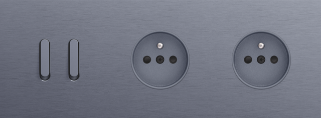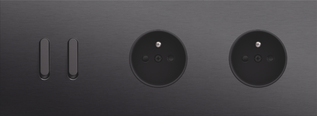 Finishing set for a socket outlet with pin earthing and shutters. This central plate must be used with a socket outlet with a flush-mounting depth of 28.5 mm and a Niko Rocker or Niko Toggle socket outlet faceplate. The finishing set has a black screw and black shutters that blend with the rest of the finishing set. Finishing colour: anthracite coated.