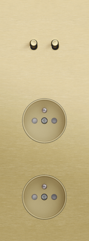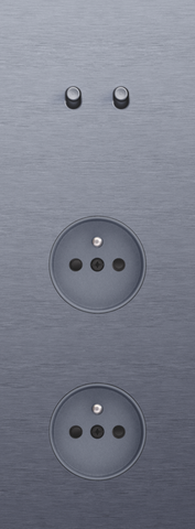 Finishing set for a socket outlet with pin earthing and shutters. This central plate must be used with a socket outlet with a flush-mounting depth of 28.5 mm and a Niko Rocker or Niko Toggle socket outlet faceplate. The finishing set has a black screw and black shutters that blend with the rest of the finishing set. Finishing colour: anthracite coated.