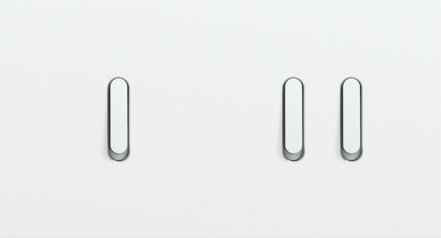 The Niko Rocker twofold horizontally oriented faceplateclicks onto a single and a double switch function that have been vertically installed on top of each other with a centre distance of 71 mm. The faceplate combines with any available Niko Rocker single and double switch function. It consists of an upper frame, light guide and lower frame that are mechanically interconnected. The upper frame is made of steel. The lower frame is made of white polycarbonate (PC) + acrylic-styrene-acrylate (ASA), white coated. The upper frame is 2 mm thick and the lower frame 6 mm.