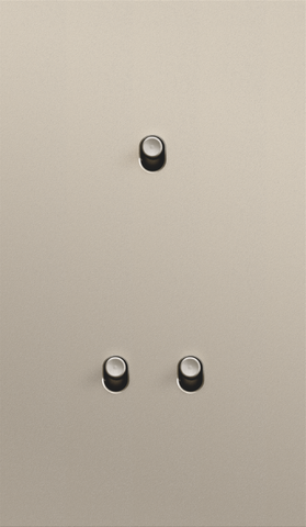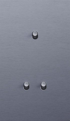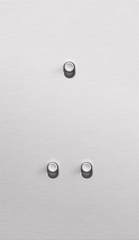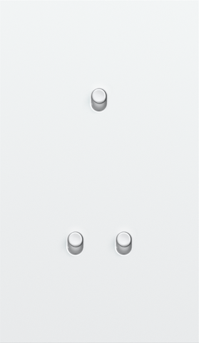 The Niko Toggle twofold vertically oriented faceplateclicks onto a single and a double switch function that have been vertically installed on top of each other with a centre distance of 60 mm. The faceplate combines with any available Niko Toggle single and double switch function. It consists of an upper frame, light guide and lower frame that are mechanically interconnected. The upper frame is made of steel. The lower frame is made of white polycarbonate (PC) + acrylic-styrene-acrylate (ASA), white coated. The upper frame is 2 mm thick and the lower frame 6 mm.