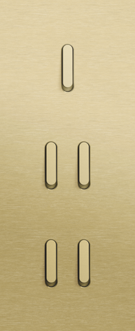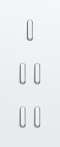 The Niko Rocker threefold vertically oriented faceplate clicks onto a single and two double switch functions that have been vertically installed on top of each other with a centre distance of 60 mm. The faceplate combines with any available Niko Rocker for single and double switch functions. It consists of an upper frame, light guide and lower frame that are mechanically interconnected. The upper frame is made of steel. The lower frame is made of white polycarbonate (PC) + acrylic-styrene-acrylate (ASA), white coated. The upper frame is 2 mm thick and the lower frame 6 mm.