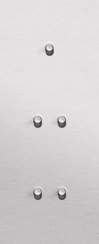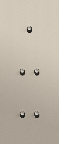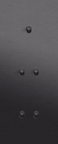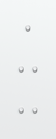 The Niko Toggle threefold vertically oriented faceplate clicks onto a single and two double switch functions that have been vertically installed on top of each other with a centre distance of 60 mm. The faceplate combines with any available Niko Toggle for single and double switch functions. It consists of an upper frame, light guide and lower frame that are mechanically interconnected. The upper frame is made of steel. The lower frame is made of white polycarbonate (PC) + acrylic-styrene-acrylate (ASA), white coated. The upper frame is 2 mm thick and the lower frame 6 mm.