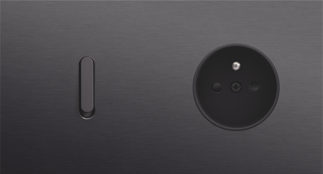Finishing set for a socket outlet with pin earthing and shutters. This central plate must be used with a socket outlet with a flush-mounting depth of 28.5 mm and a Niko Rocker or Niko Toggle socket outlet faceplate. The finishing set has a black screw and black shutters that blend with the rest of the finishing set. Finishing colour: anthracite coated.