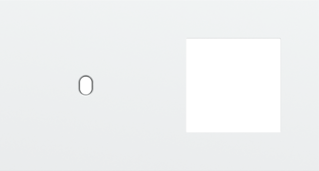 The Niko Toggle twofold horizontally oriented faceplate clicks onto a single switch and one 45 x 45 mm function that have been horizontally installed next to each other with a centre distance of 71 mm. The faceplate combines with any available Niko Toggle single switch function and a Niko 45 x 45 mm function. It consists of an upper frame, light guide and lower frame that are mechanically interconnected. The upper frame is made of steel. The lower frame is made of white polycarbonate (PC) + acrylic-styrene-acrylate (ASA), white coated. The upper frame is 2 mm thick and the lower frame 6 mm.
