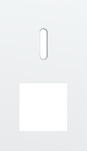 The Niko Rocker twofold vertically oriented faceplate clicks onto a single switch and one 45 x 45 mm function that have been vertically installed on top of each other with a centre distance of 60 mm. The faceplate combines with any available Niko Rocker for single switch functions and Niko 45 x 45 mm finishing set. It consists of an upper frame, light guide and lower frame that are mechanically interconnected. The upper frame is made of steel. The lower frame is made of white polycarbonate (PC) + acrylic-styrene-acrylate (ASA), white coated. The upper frame is 2 mm thick and the lower frame 6 mm.