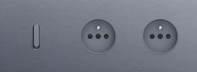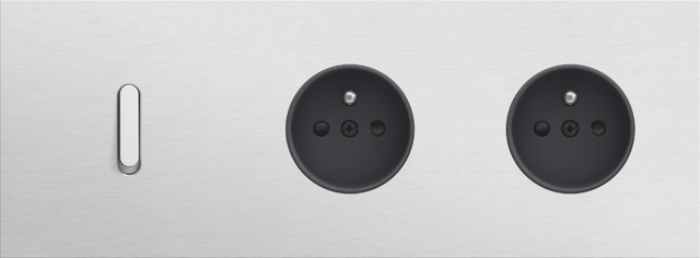 Finishing set for a socket outlet with pin earthing and shutters. This central plate must be used with a socket outlet with a flush-mounting depth of 28.5 mm and a Niko Rocker or Niko Toggle socket outlet faceplate. The finishing set has a black screw and black shutters that blend with the rest of the finishing set. Finishing colour: anthracite coated.
