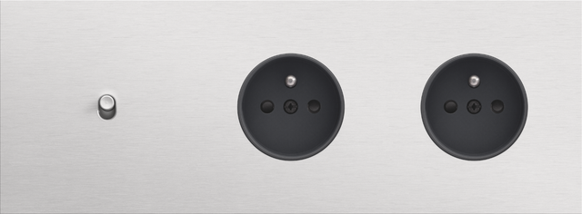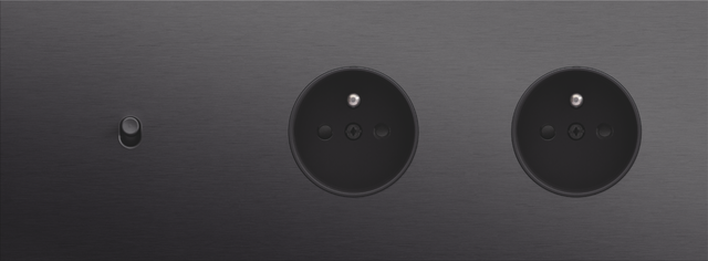 Finishing set for a socket outlet with pin earthing and shutters. This central plate must be used with a socket outlet with a flush-mounting depth of 28.5 mm and a Niko Rocker or Niko Toggle socket outlet faceplate. The finishing set has a black screw and black shutters that blend with the rest of the finishing set. Finishing colour: anthracite coated.