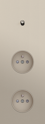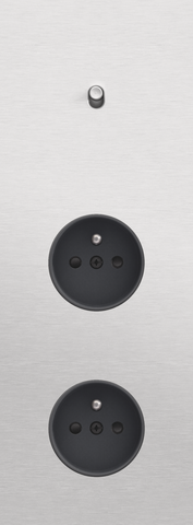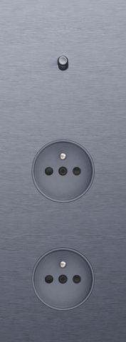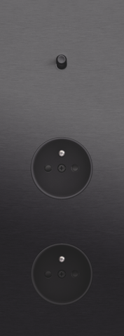 Finishing set for a socket outlet with pin earthing and shutters. This central plate must be used with a socket outlet with a flush-mounting depth of 28.5 mm and a Niko Rocker or Niko Toggle socket outlet faceplate. The finishing set has a black screw and black shutters that blend with the rest of the finishing set. Finishing colour: anthracite coated.