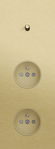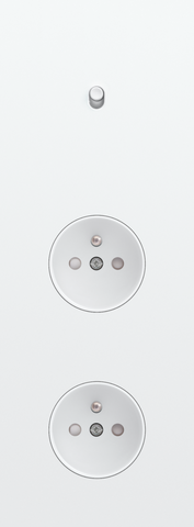 The Niko Toggle threefold vertically oriented faceplate clicks onto a single switch and two socket outlet functions that have been vertically installed on top of each other with a centre distance of 71 mm. The faceplate combines with any available Niko Toggle for single switch functions and Niko Rocker and Niko Toggle socket outlet finishing set. It consists of an upper frame, light guide and lower frame that are mechanically interconnected. The upper frame is made of steel. The lower frame is made of white polycarbonate (PC) + acrylic-styrene-acrylate (ASA), white coated. The upper frame is 2 mm thick and the lower frame 6 mm.