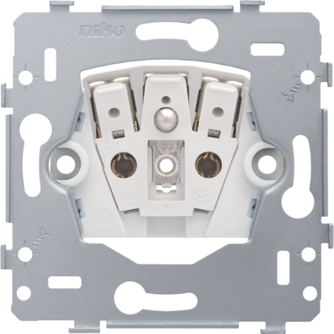 Mechanism for a double N.O. or N.C. push button, 10 A/250 Vac. The base is equipped with claw fixing and plug-in terminals. The base has an installation depth of 26 mm. The N.O. or N.C. push button is used to create an action pulse as input for teleruptors and smart home systems. A Niko Rocker or Niko Toggle and faceplate in the colour of your choice must be ordered separately.