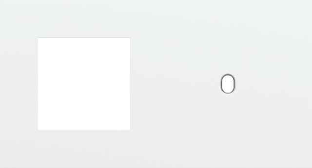 The Niko Toggle twofold horizontally oriented faceplate clicks onto one 45 x 45 mm function and a single switch function that have been horizontally installed next to each other with a centre distance of 71 mm. The faceplate combines with any available Niko 45 x 45 mm function and a Niko Toggle single switch function. It consists of an upper frame, light guide and lower frame that are mechanically interconnected. The upper frame is made of steel. The lower frame is made of white polycarbonate (PC) + acrylic-styrene-acrylate (ASA), white coated. The upper frame is 2 mm thick and the lower frame 6 mm.