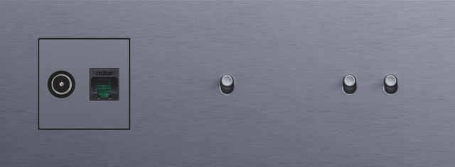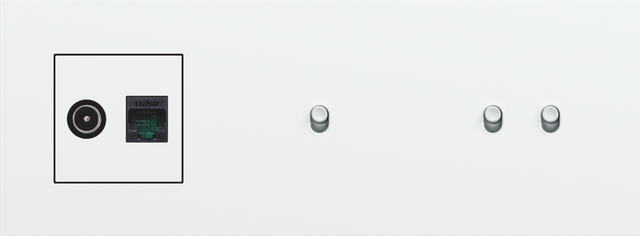Niko recommends a design combination with a finishing set in the following colour: steel white coated for Niko Rocker and Niko Toggle finishing sets and white coated for other finishing sets.