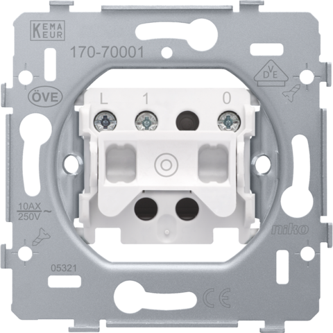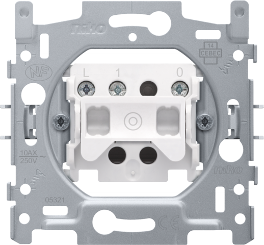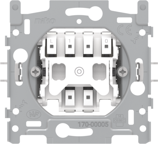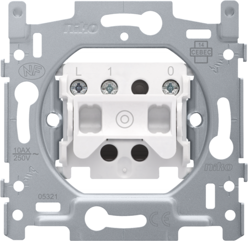 Mechanism for a N.O. push button with 3 connection terminals, with screw fixing. A finishing set and faceplate in the colour of your choice must be ordered separately.