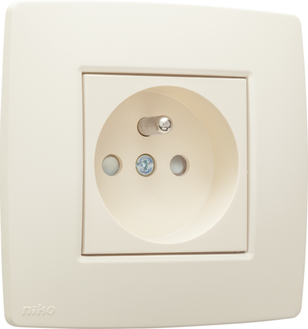 Reference code100-66601Finishing set for a socket outlet with pin earthing and shutters. Finishing colour: cream. This central plate must be used with a socket outlet with a flush-mounting depth of 28.5 mm. Finishing colour: cream.