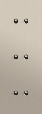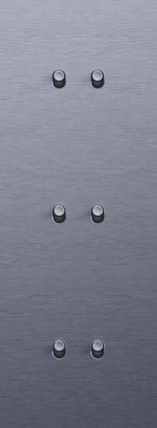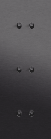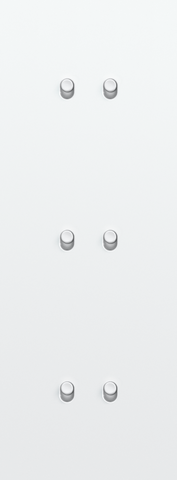 The Niko Toggle threefold vertically oriented faceplateclicks onto three double switch functions that have been horizontally installed next to each other with a centre distance of 71 mm. The faceplate combines with any available Niko Toggle double switch function. It consists of an upper frame, light guide and lower frame that are mechanically interconnected. The upper frame is made of steel. The lower frame is made of white polycarbonate (PC) + acrylic-styrene-acrylate (ASA), white coated. The upper frame is 2 mm thick and the lower frame 6 mm.