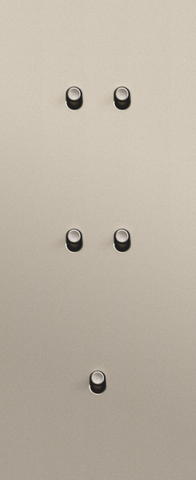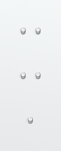 The Niko Toggle threefold vertically oriented faceplate clicks onto two double and a single switch function that have been vertically installed on top of each other with a centre distance of 60 mm. The faceplate combines with any available Niko Toggle for single and double switch functions. It consists of an upper frame, light guide and lower frame that are mechanically interconnected. The upper frame is made of steel. The lower frame is made of white polycarbonate (PC) + acrylic-styrene-acrylate (ASA), white coated. The upper frame is 2 mm thick and the lower frame 6 mm.