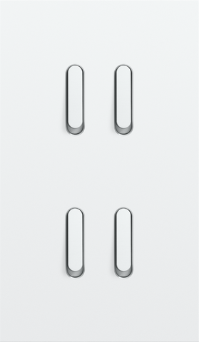 The Niko Rocker twofold vertically oriented faceplate clicks onto two double switch functions that have been vertically installed above each other with a centre distance of 60 mm. The faceplate combines with any available Niko Rocker for double switch functions.