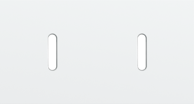 The Niko Rocker twofold horizontally oriented faceplateclicks onto two single switch functions that have been vertically installed on top of each other with a centre distance of 71 mm. The faceplate combines with any available Niko Rocker single switch function. It consists of an upper frame, light guide and lower frame that are mechanically interconnected. The upper frame is made of steel. The lower frame is made of white polycarbonate (PC) + acrylic-styrene-acrylate (ASA), white coated. The upper frame is 2 mm thick and the lower frame 6 mm.