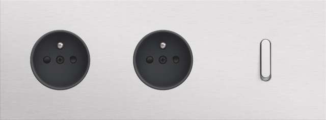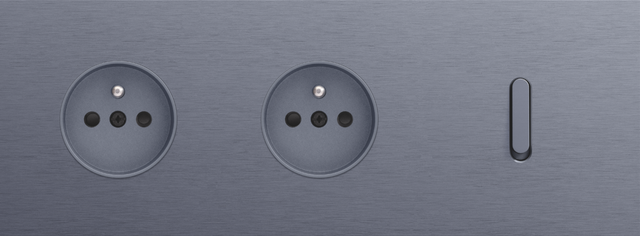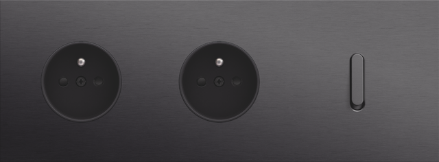 Finishing set for a socket outlet with pin earthing and shutters. This central plate must be used with a socket outlet with a flush-mounting depth of 28.5 mm and a Niko Rocker or Niko Toggle socket outlet faceplate. The finishing set has a black screw and black shutters that blend with the rest of the finishing set. Finishing colour: anthracite coated.