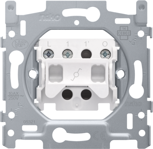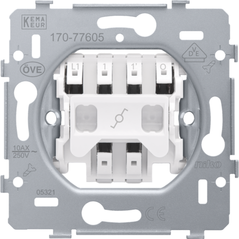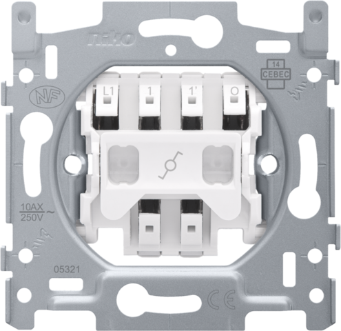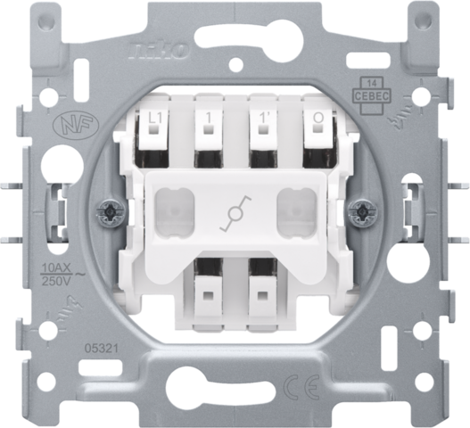 Base for two-way control switch with 4 connection terminals, 10 AX/250 Vac, screw terminals.
