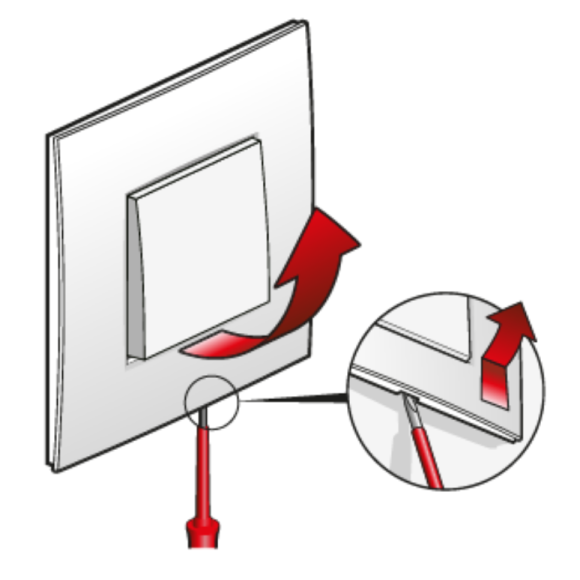 Note: This method only applies when removing Niko switches with a square central plate (in the range since 2006).